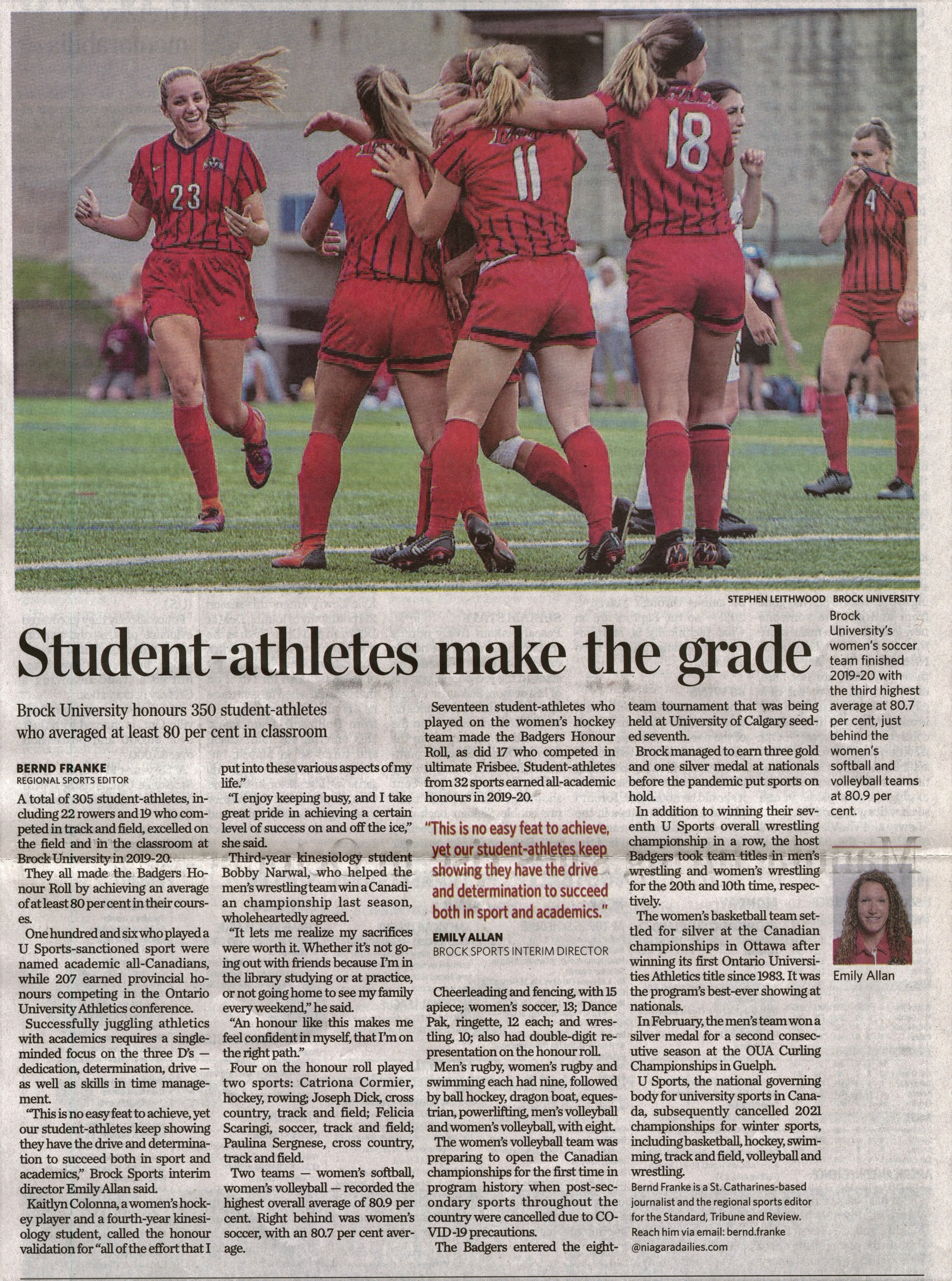 - Student-athletes make the grade : Brock University honours 350 student-athletes who averaged at least 80 per cent in the classroom