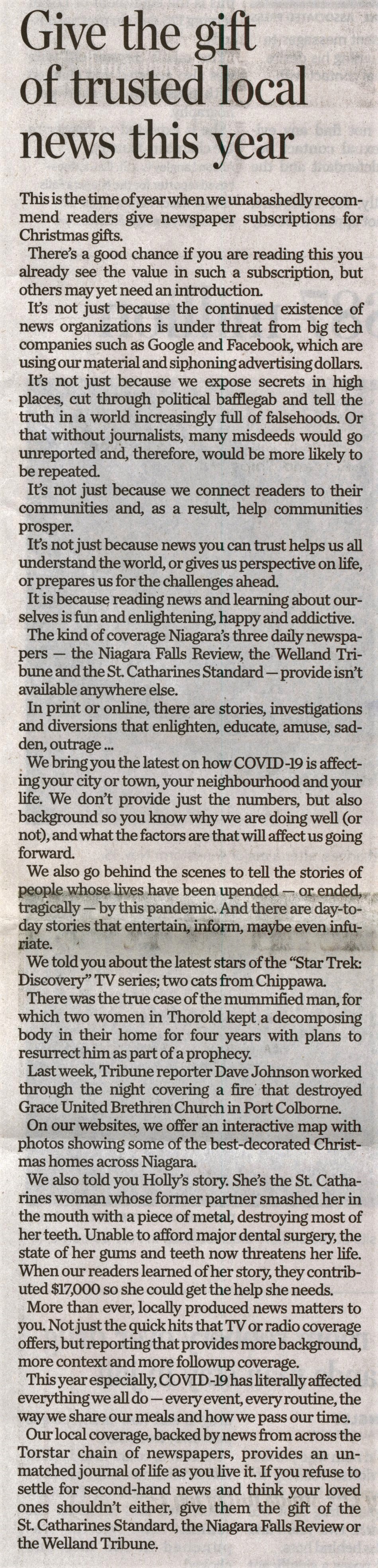 - Niagara Falls Review / Welland Tribune / St. Catharines Standard / Johnson, Dave / local news / COVID-19 pandemic