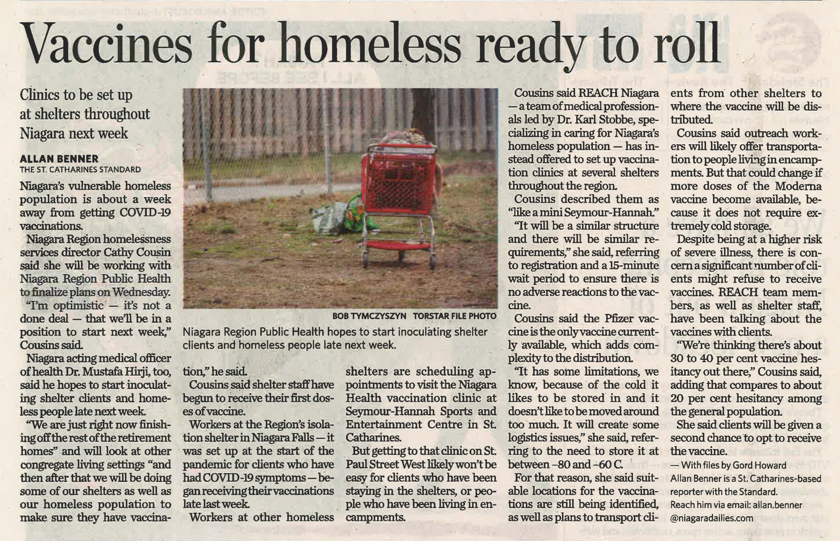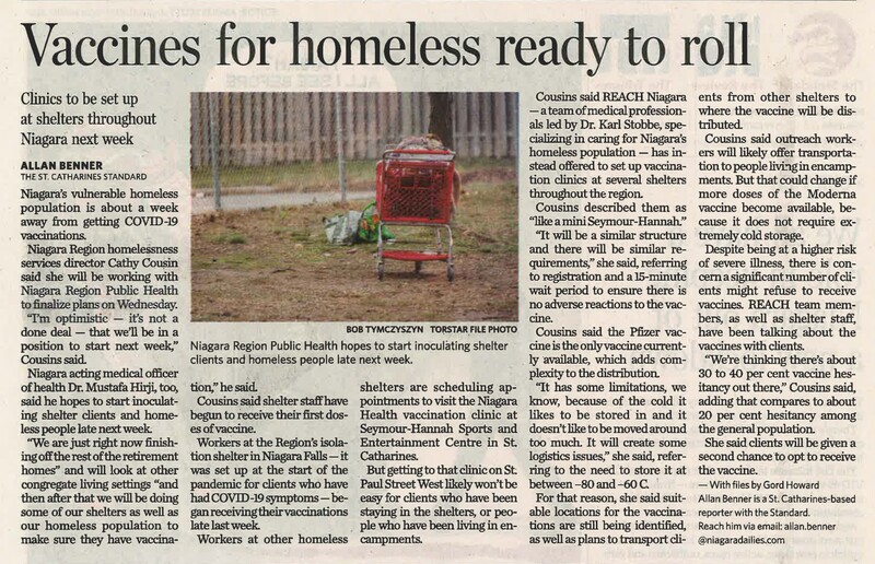 - Vaccines for homeless ready to roll : Clinics to be set up at shelters throughout Niagara next week