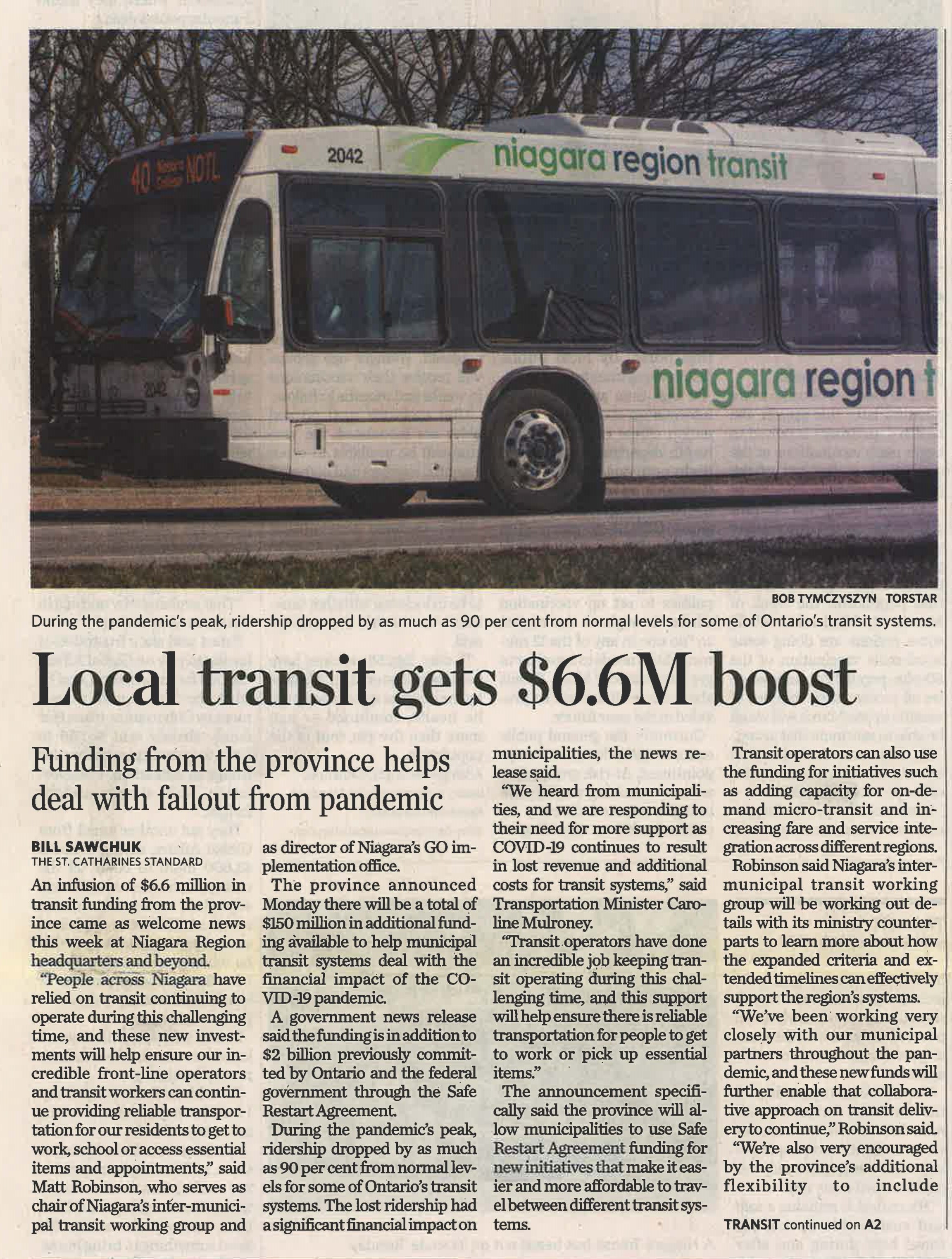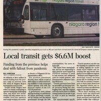 - Local transit gets $6.6M boost : Funding from the province helps deal with fallout from pandemic