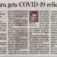 Niagara gets COVID-19 relief : Region will receive $9 million in cash to offset losses