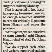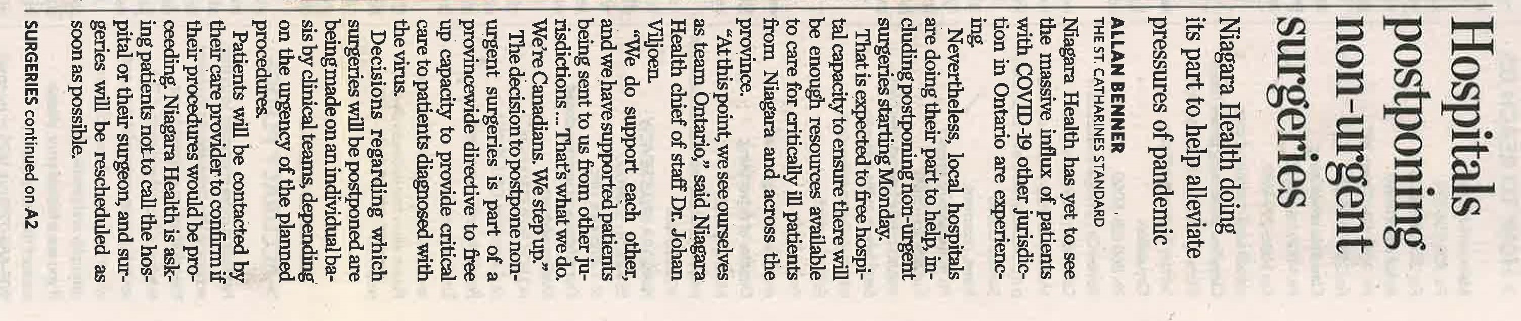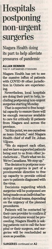 - Hospitals postponing non-urgent surgeries : Niagara Health doing its part to help alleviate pressures of pandemic