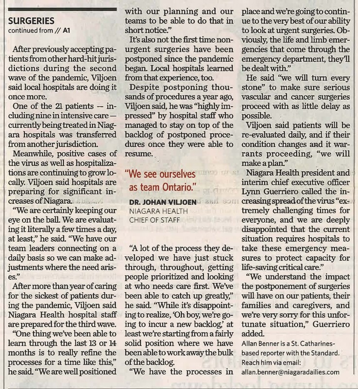 - COVID-19 pandemic / Niagara Health / Viljoen, Johan Dr.