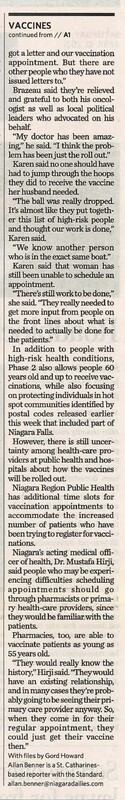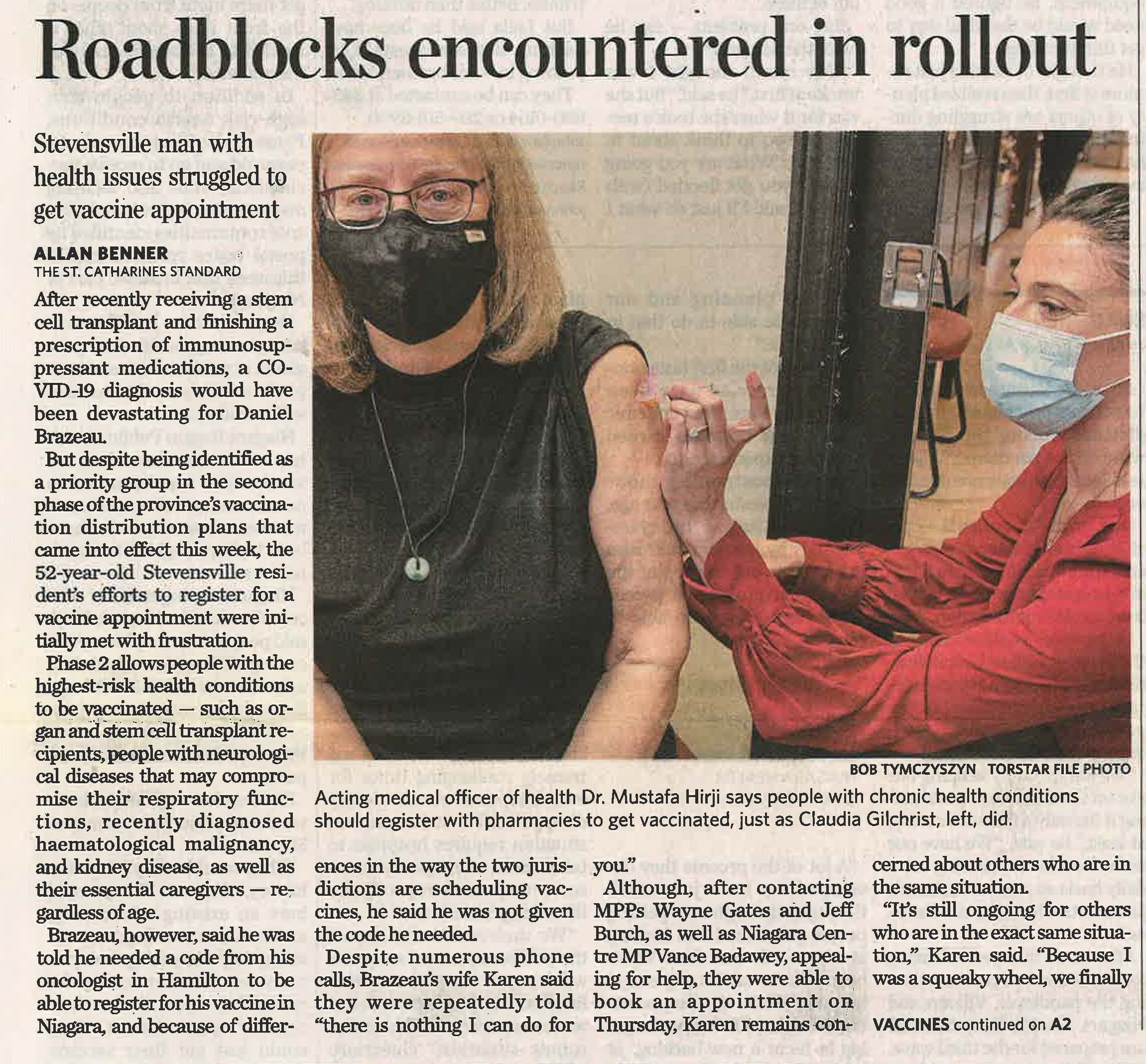 - COVID-19 pandemic / Hirji, Mustafa Dr. / Gilchrist, Claudia / Gates, Wayne MPP / Badawey, Vance MP / Burch, Jeff / Brazeau, Daniel / vaccination