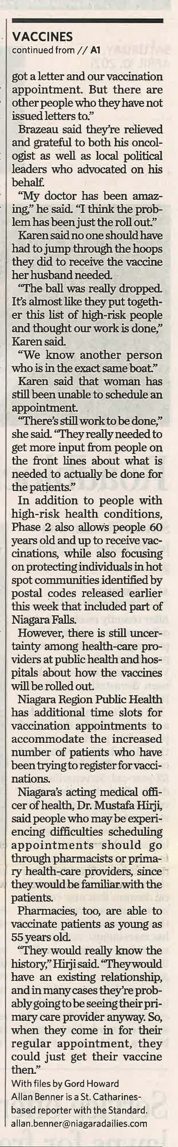 - Roadblocks encountered in rollout : Stevensville man with health issues struggle to get vaccine appointment