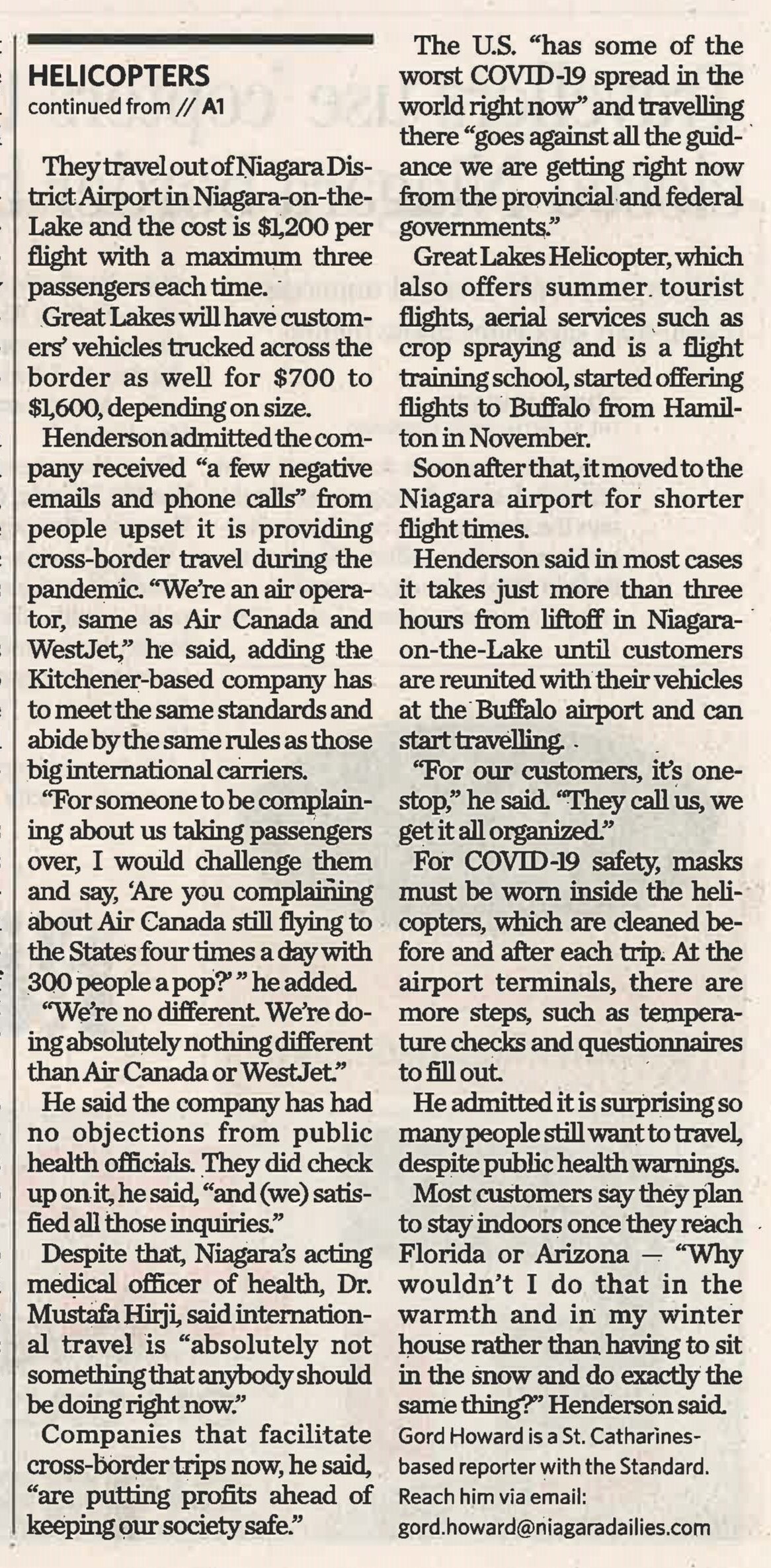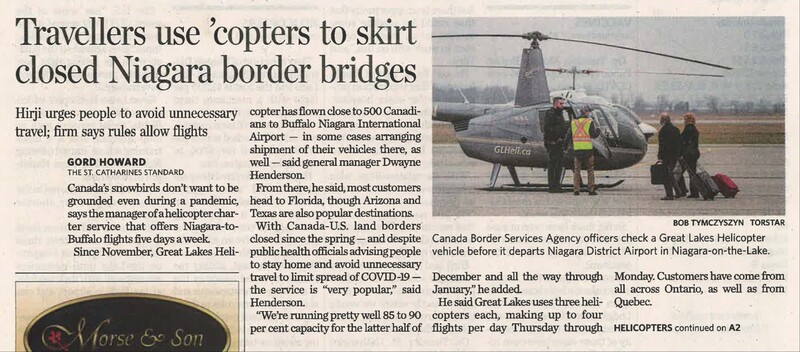 Travellers use 'copters to skirt closed Niagara border bridges : Hirji urges people to avoid unnecessary travel; firm says rules allow flights