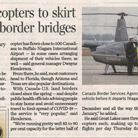 - Travellers use 'copters to skirt closed Niagara border bridges : Hirji urges people to avoid unnecessary travel; firm says rules allow flights