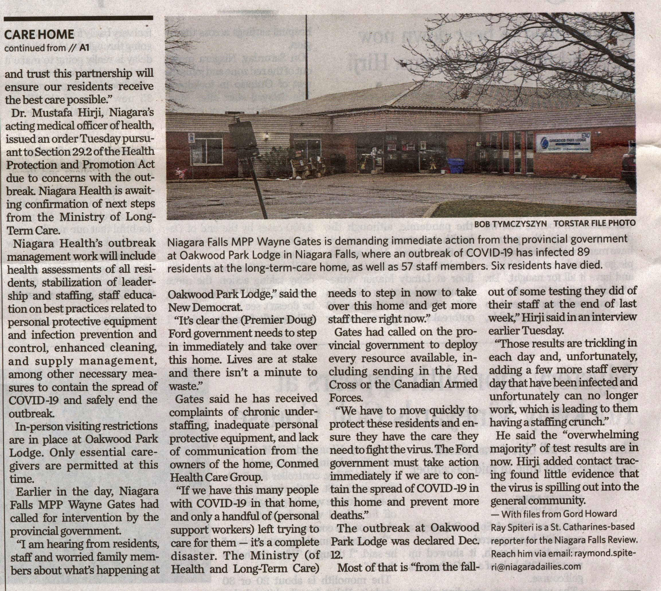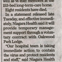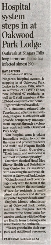 Hospital system steps in at Oakwood Park Lodge : Outbreak at Niagara Falls long-term-care home has infected almost 190