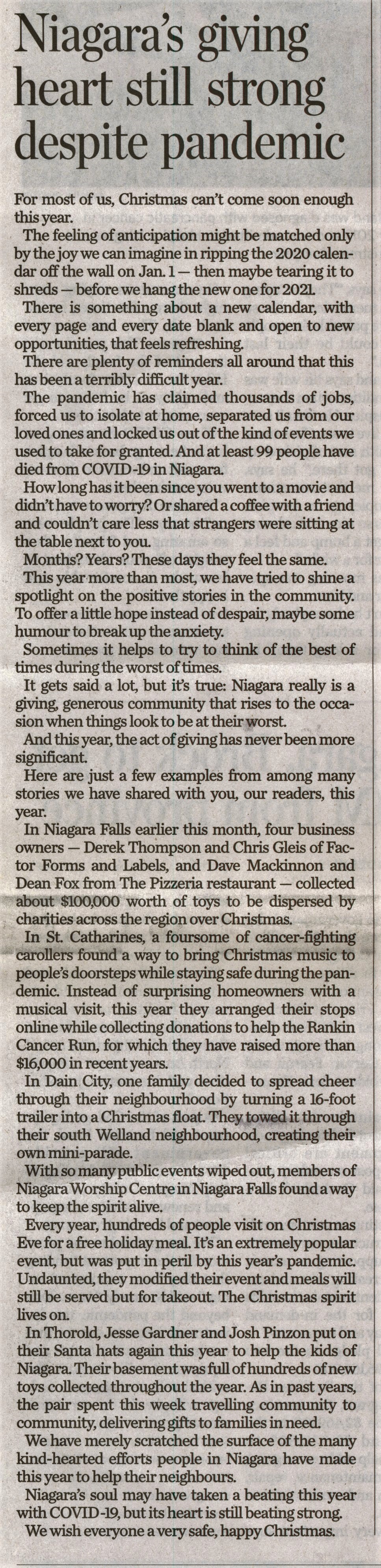 - Niagara's giving heart still strong despite pandemic
