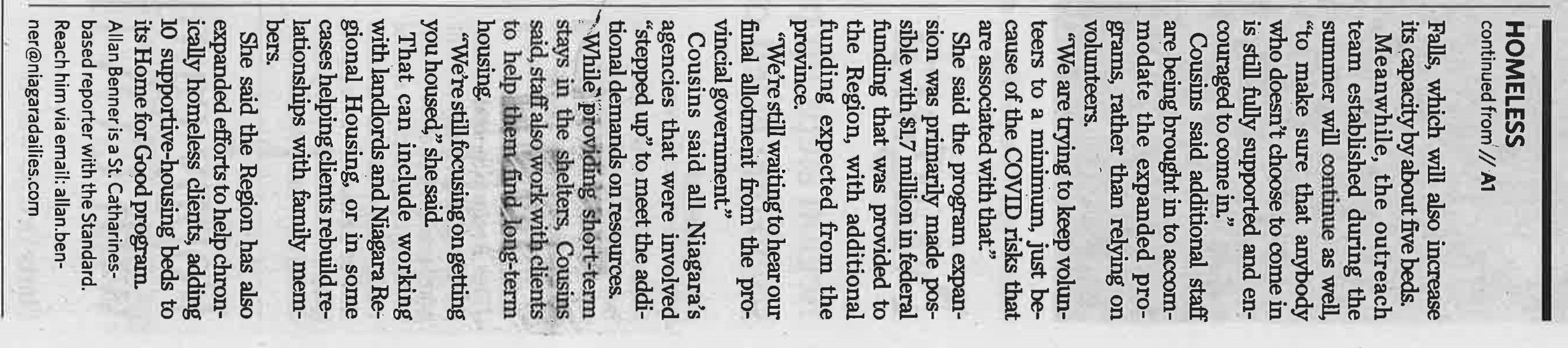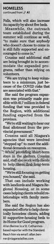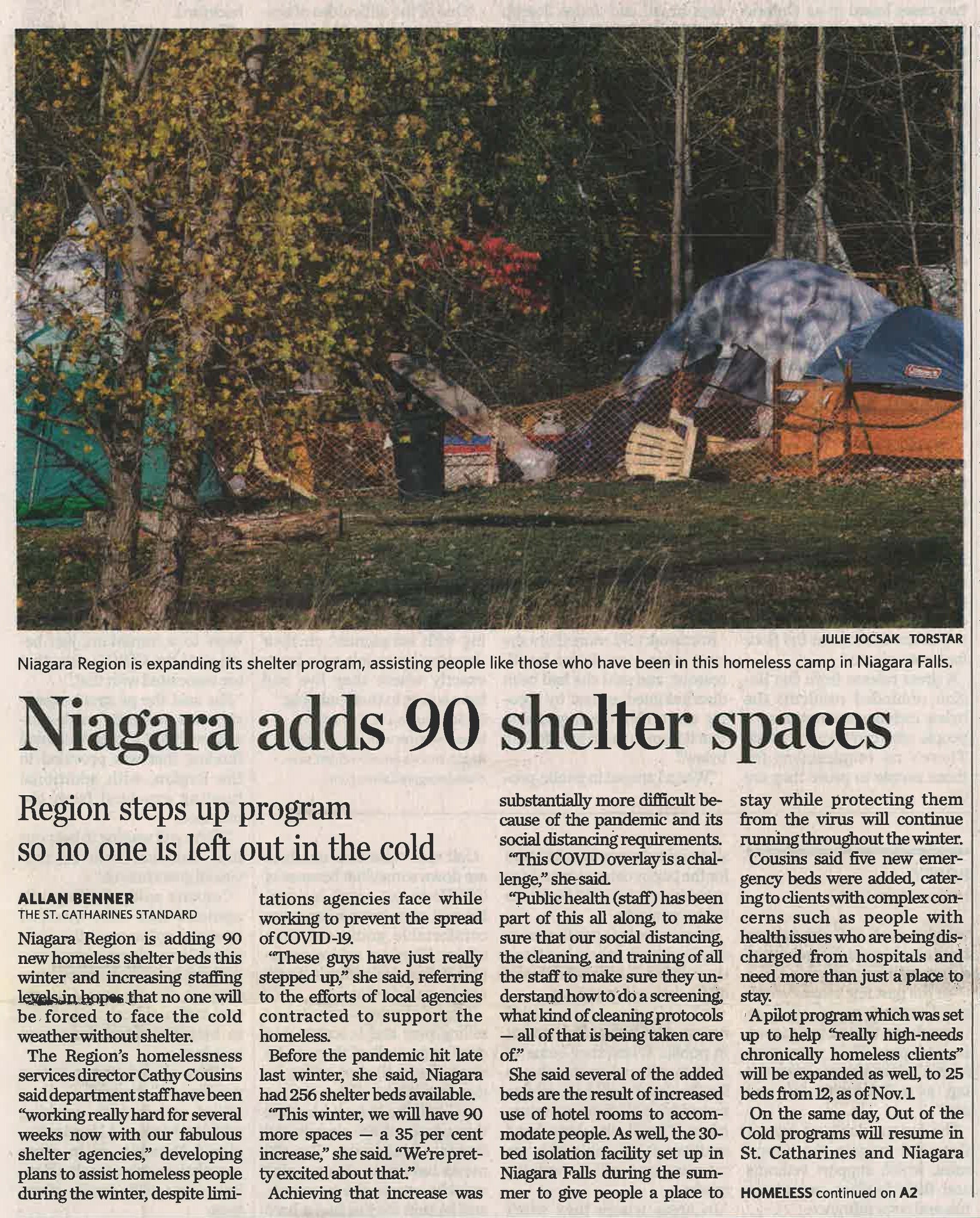 - Niagara adds 90 shelter spaces : Region steps up program so no one is left out in the cold