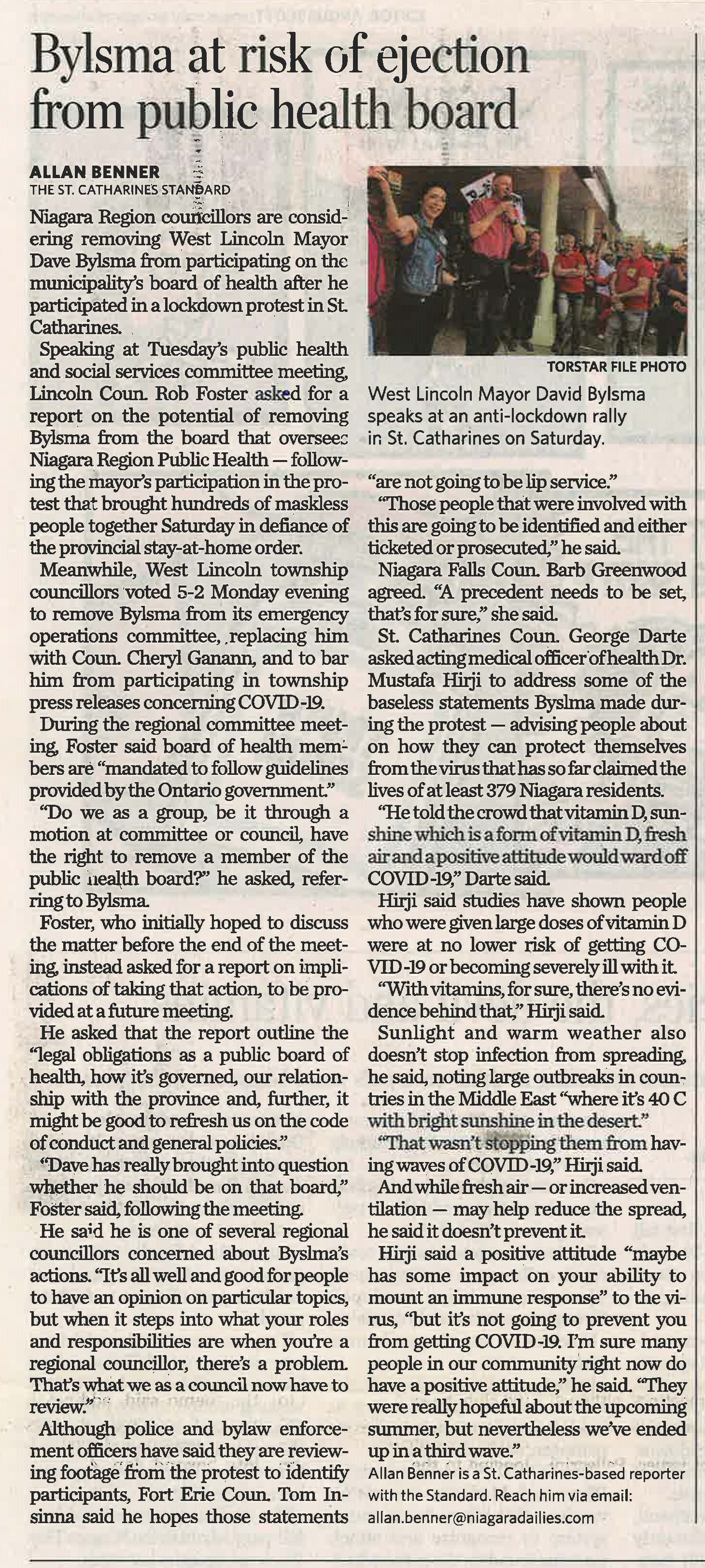 - Bylsma, David / Niagara Region councillors / Foster, Rob / Niagara Regional Public Health / COVID-19 pandemic