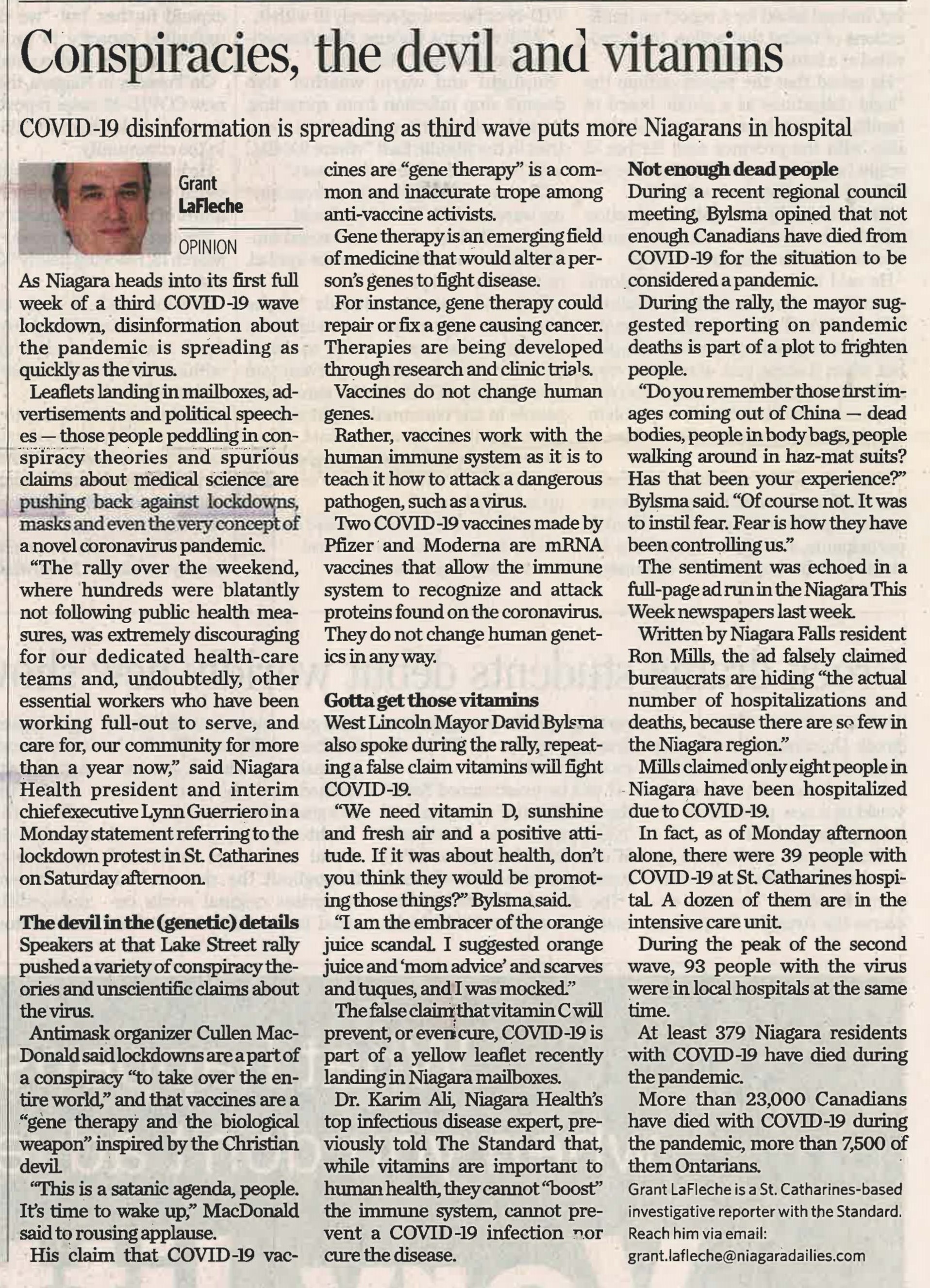 - Conspiracies, the devil and vitamins : COVID-19 disinformation is spreading as third wave puts more Niagarans in hospital