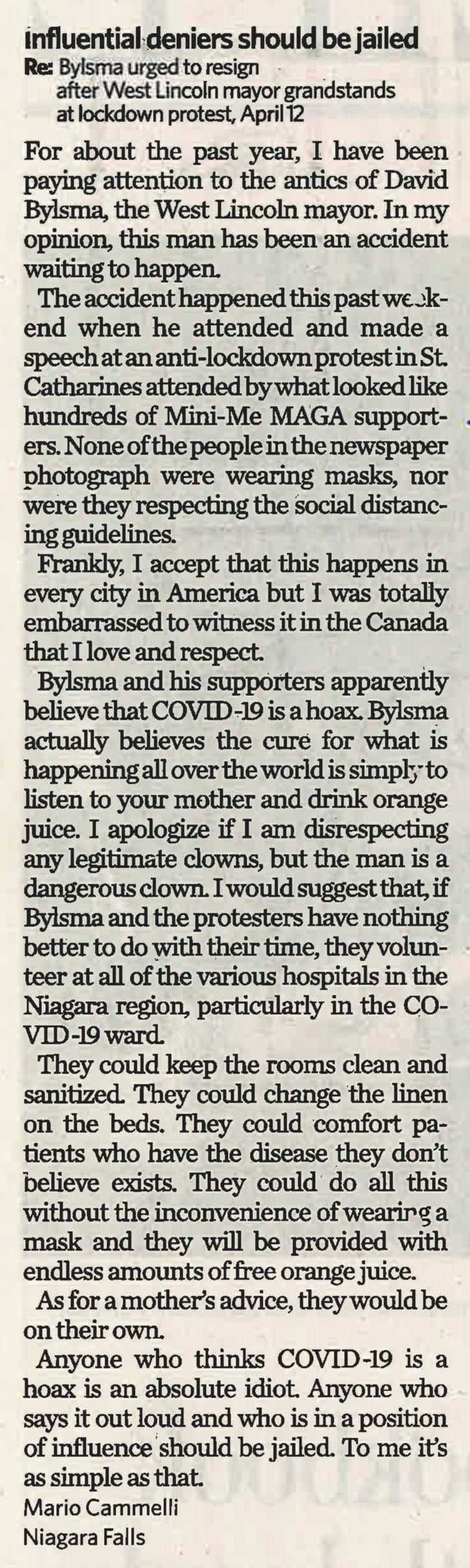 - COVID-19 pandemic / Bylsma, David / anti-lockdown protest