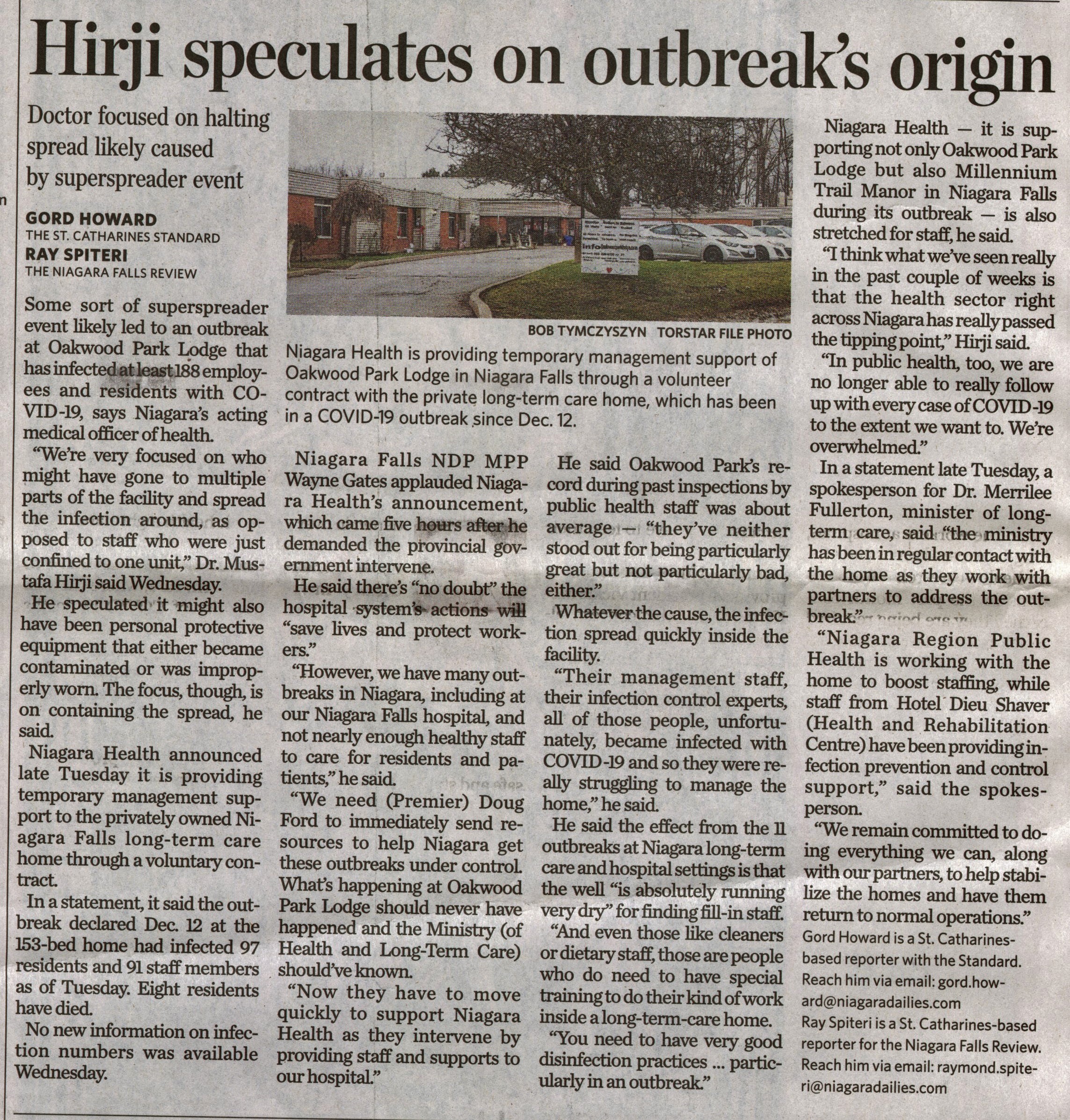 - Hirji, Mustrafa Dr. / Oakwood Park Lodge / Gates, Wayne / COVID-19 pandemic
