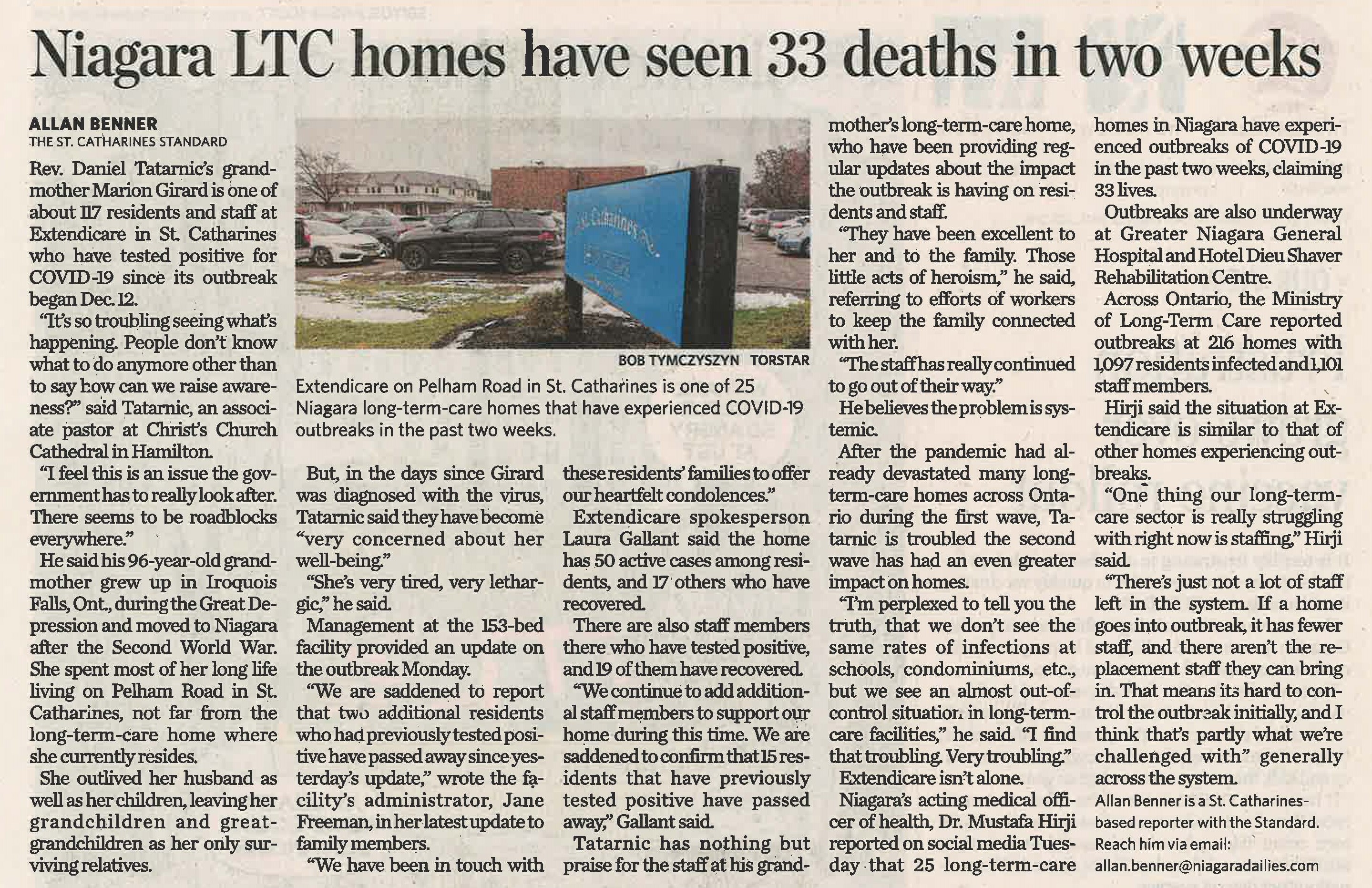 - Niagara LTC homes have seen 33 deaths in two weeks