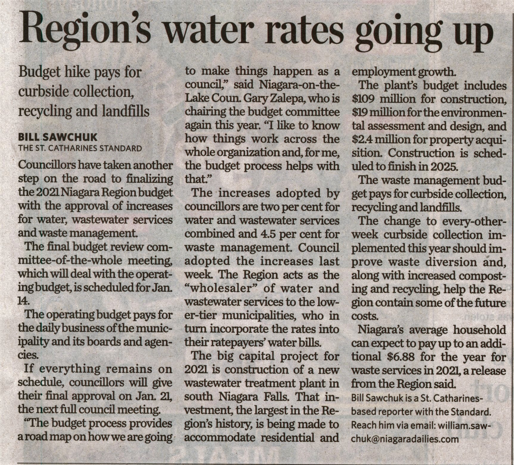 - Region's water rates going up : Budget hike pays for curbside collection, recycling and landfills