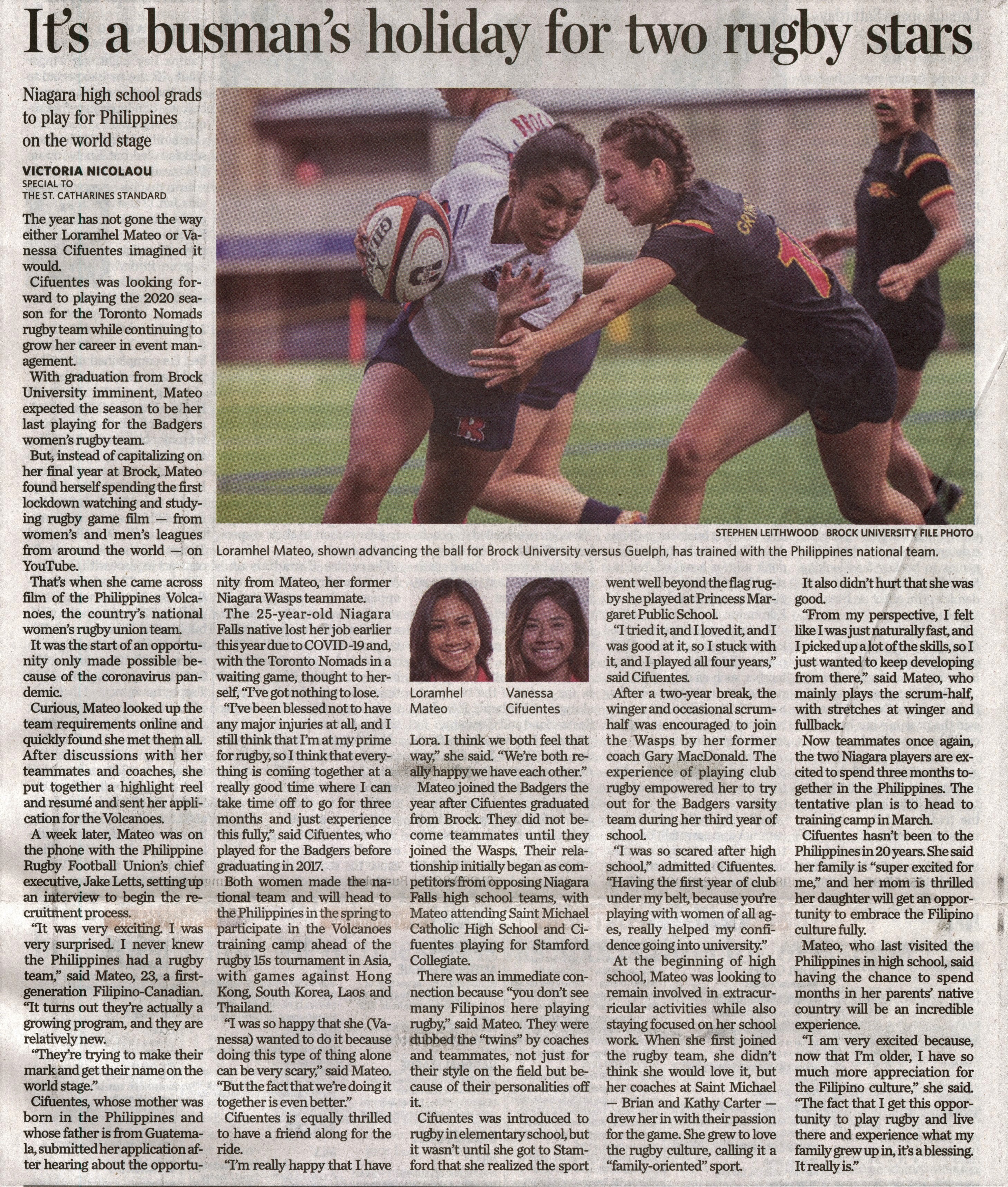 - It's a busman's holiday for two rugby stars : Niagara high school grads to play for Philippines on the world stage