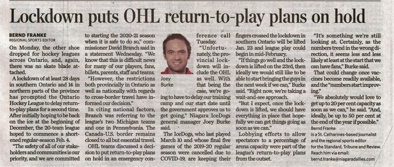 - Burke, Joey / Niagara IceDogs / COVID-19 pandemic / lockdown