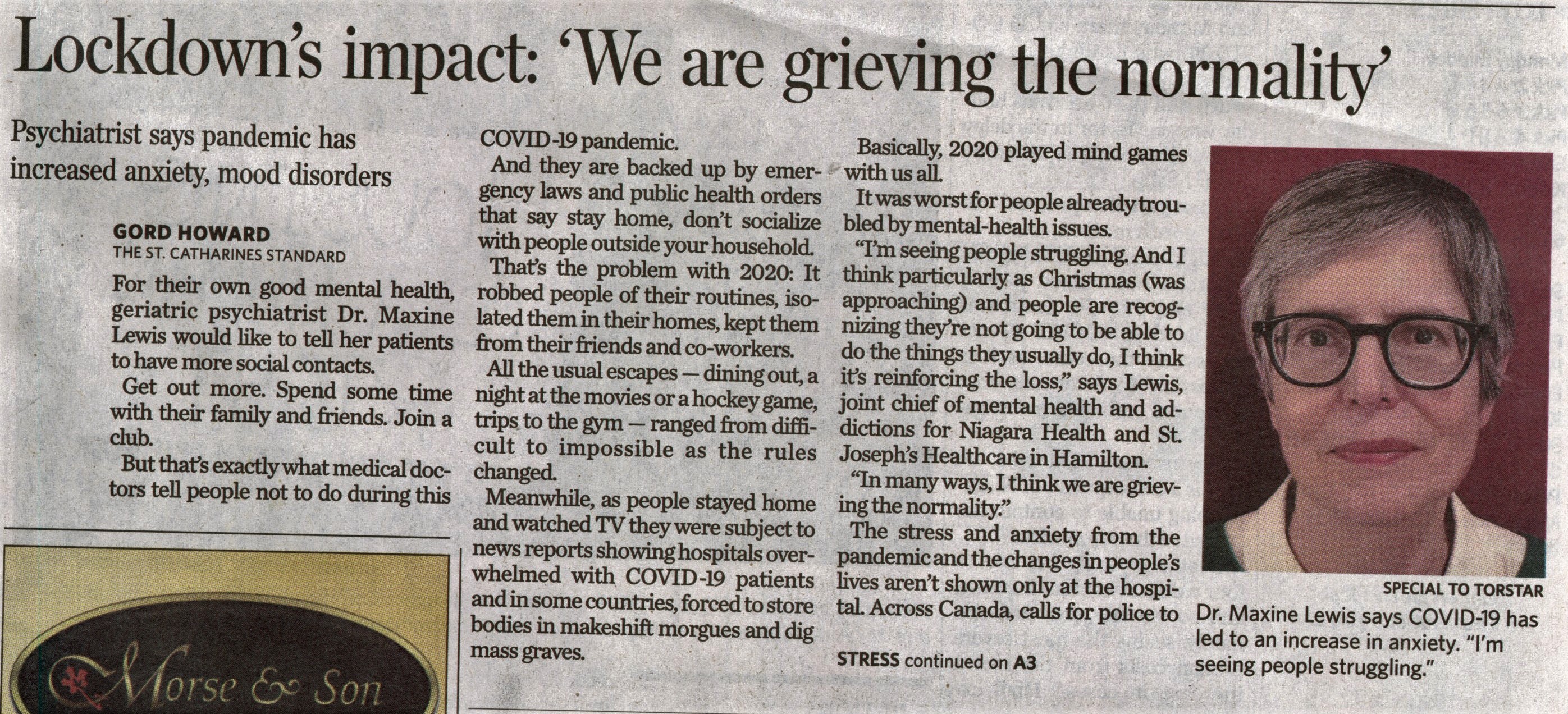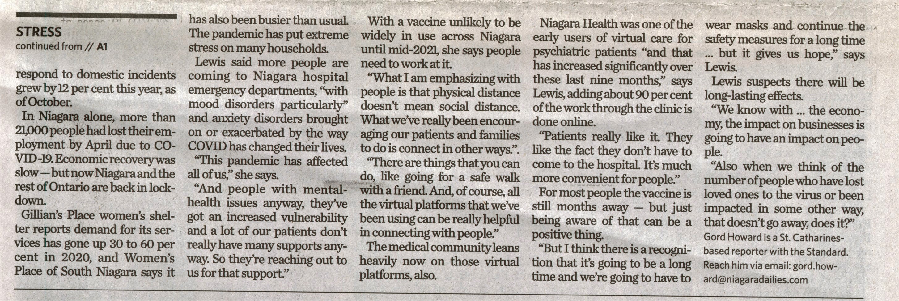 - Lewis, Maxine Dr. / COVID-19 pandemic / Gillian's Place / mental health /
