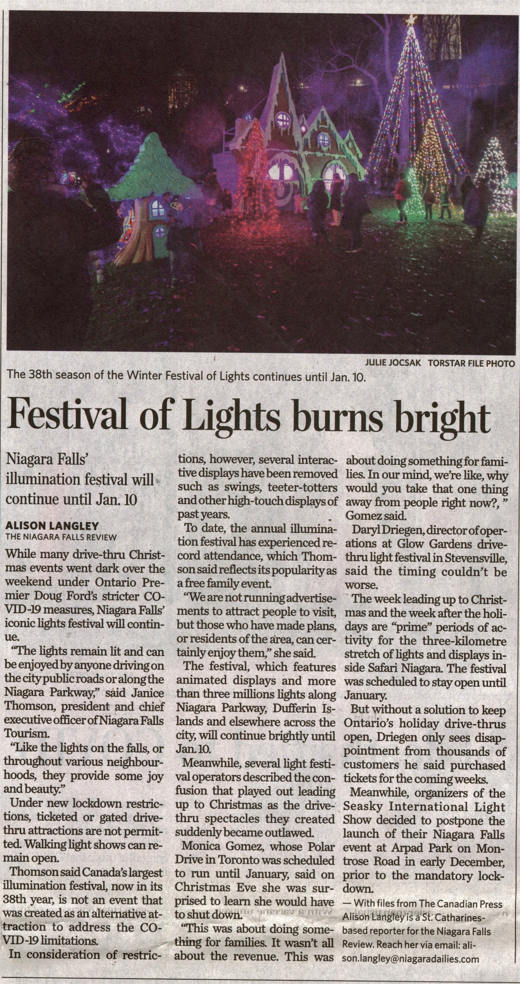 - Winter Festival of Lights / Thomson, Janice / COVID-19 pandemic / Niagara Falls Tourism / lockdown