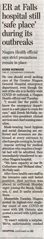 - ER at Falls hospital still 'safe place' during its outbreaks : Niagara Health official says strict precautions remain in place