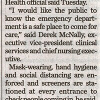 ER at Falls hospital still 'safe place' during its outbreaks : Niagara Health official says strict precautions remain in place