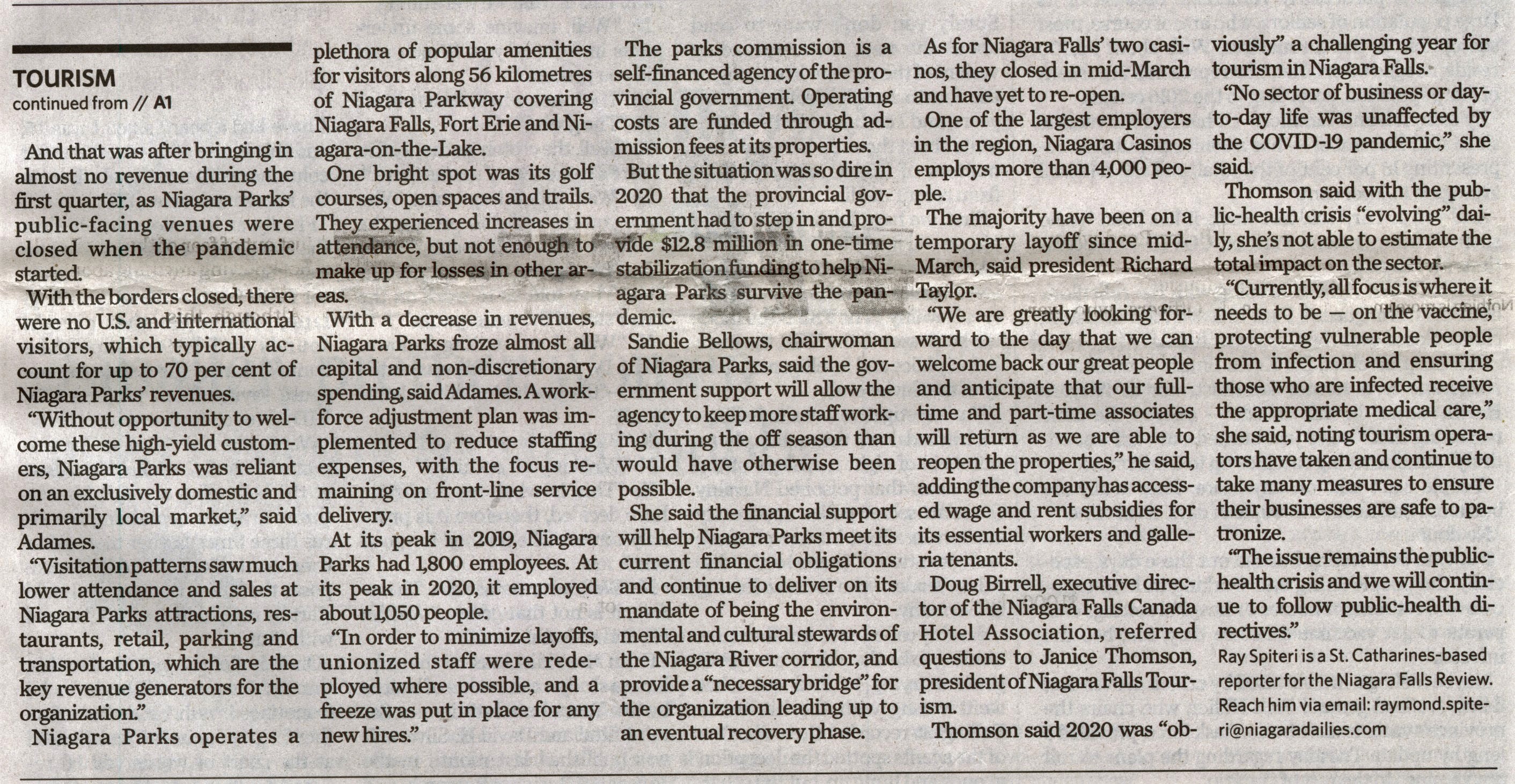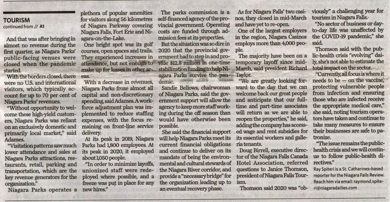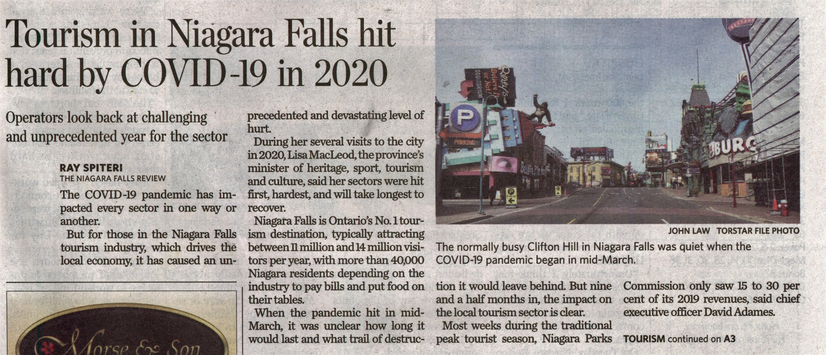 - Tourism in Niagara Falls hit hard by COVID-19 in 2020 : Operators look back at challenging and unprecedented year for the sector