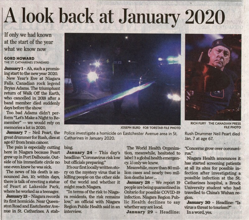 - Niagara Falls New Years Eve / Peart, Neil / first homicide / Niagara Region Public Health / COVID-19
