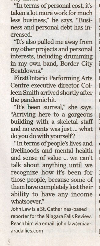 The year stages went dark; Sound of silence in Niagara : Local theatre, concerts and events quiet as COVID devastated local scene