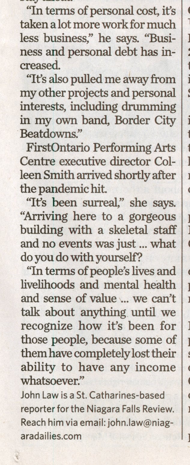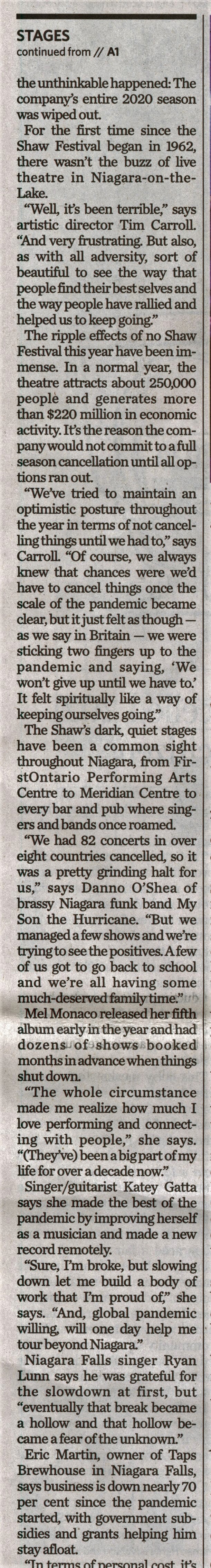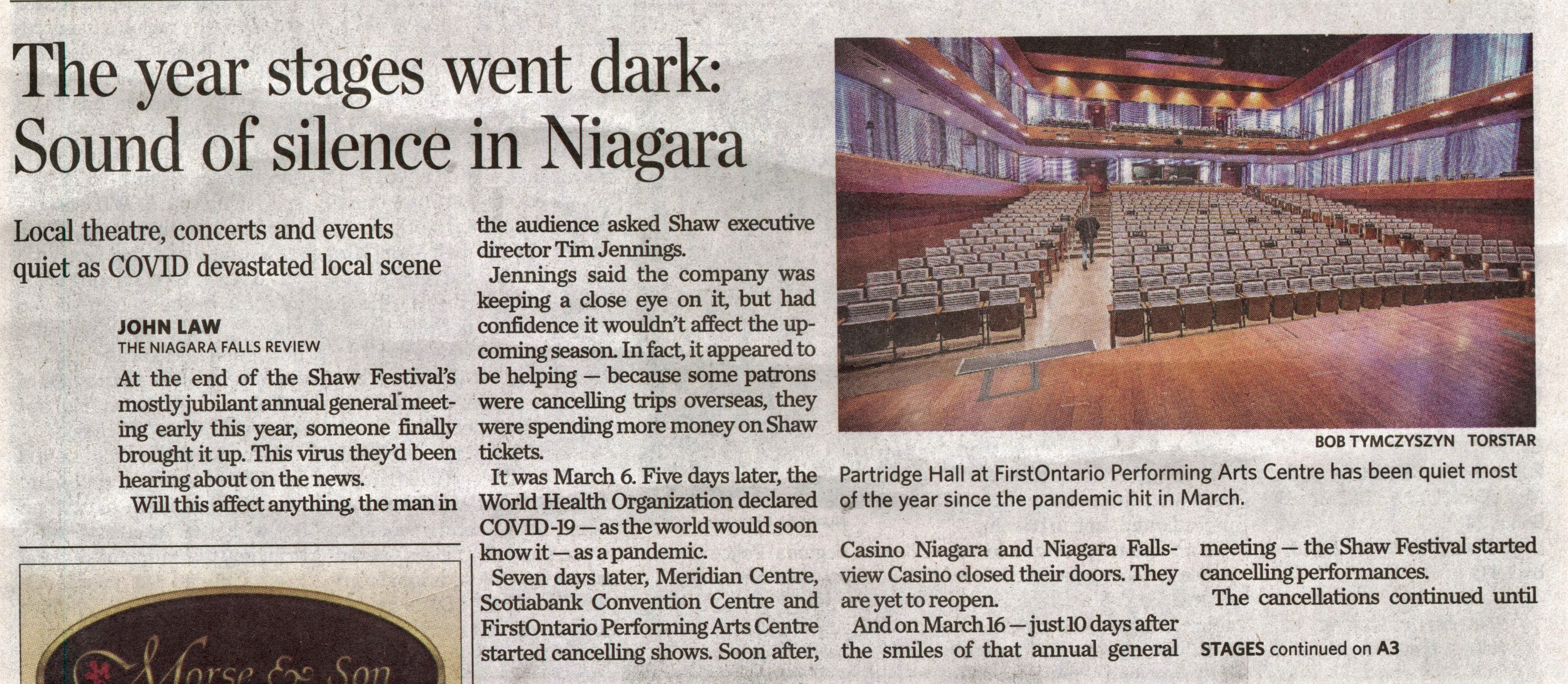 - The year stages went dark; Sound of silence in Niagara : Local theatre, concerts and events quiet as COVID devastated local scene