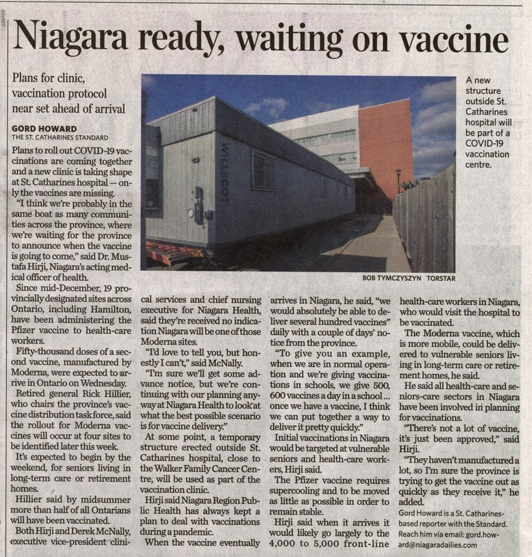 - Niagara ready, waiting on vaccine : Plans for clinic, vaccination protocol near set ahead of arrival