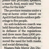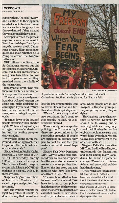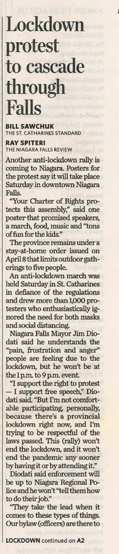 - anti-lockdown rally / COVID-19 pandemic / Diodati, Jim / Niagara Regional Police / protest