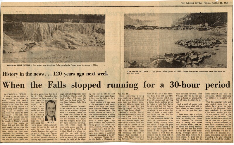 - History in the news ... 120 years ago next week : When the Falls stopped running for a 30-hour period