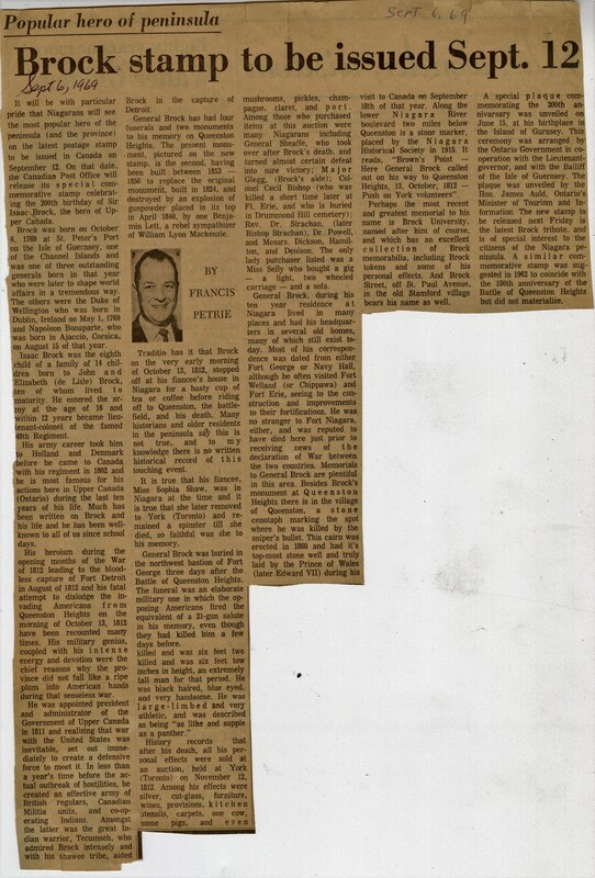 Popular hero of peninsula : Brock stamp to be issued Sept. 12