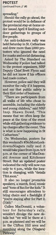 - Planned lockdown protest has Niagara residents on edge : Niagara Falls mayor letting police decide how to handle crowds