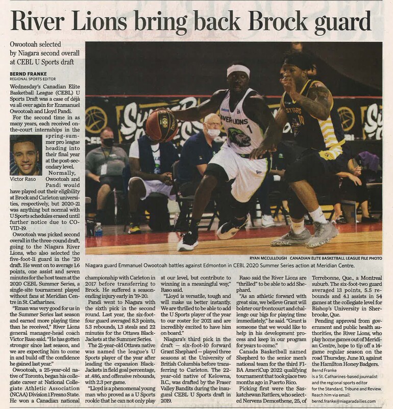 - River Lions bring back Brock guard : Owootoah selected by Niagara second overall at CEBL U Sports draft