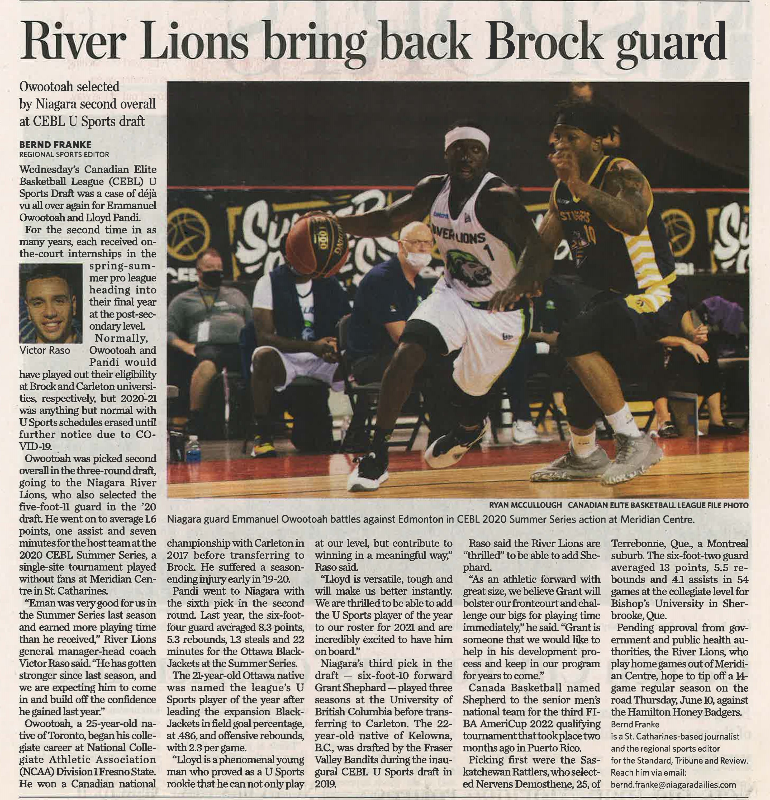 - Owootoah, Emmanuel / Raso, Victor / COVID-19 pandemic / Brock University / Canadian Elite Basketball League