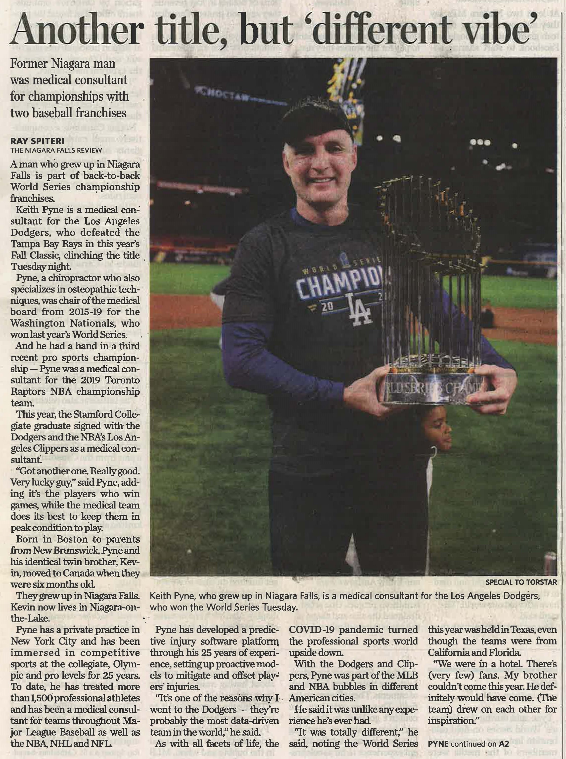 - Another title, but diferent vibe : former Niagara man was medical consultant for championships with two baseball franchises