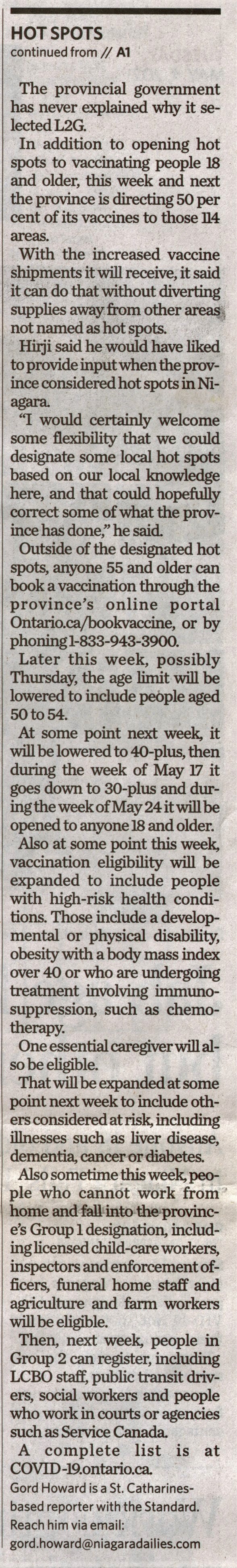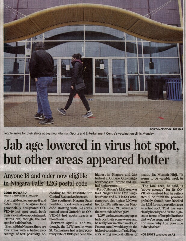Jab age lowered in virus hot spot, but other areas appeared hotter : Anyone 18 and older now eligible in Niagara Falls' L2G postal code
