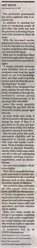 - Jab age lowered in virus hot spot, but other areas appeared hotter : Anyone 18 and older now eligible in Niagara Falls' L2G postal code