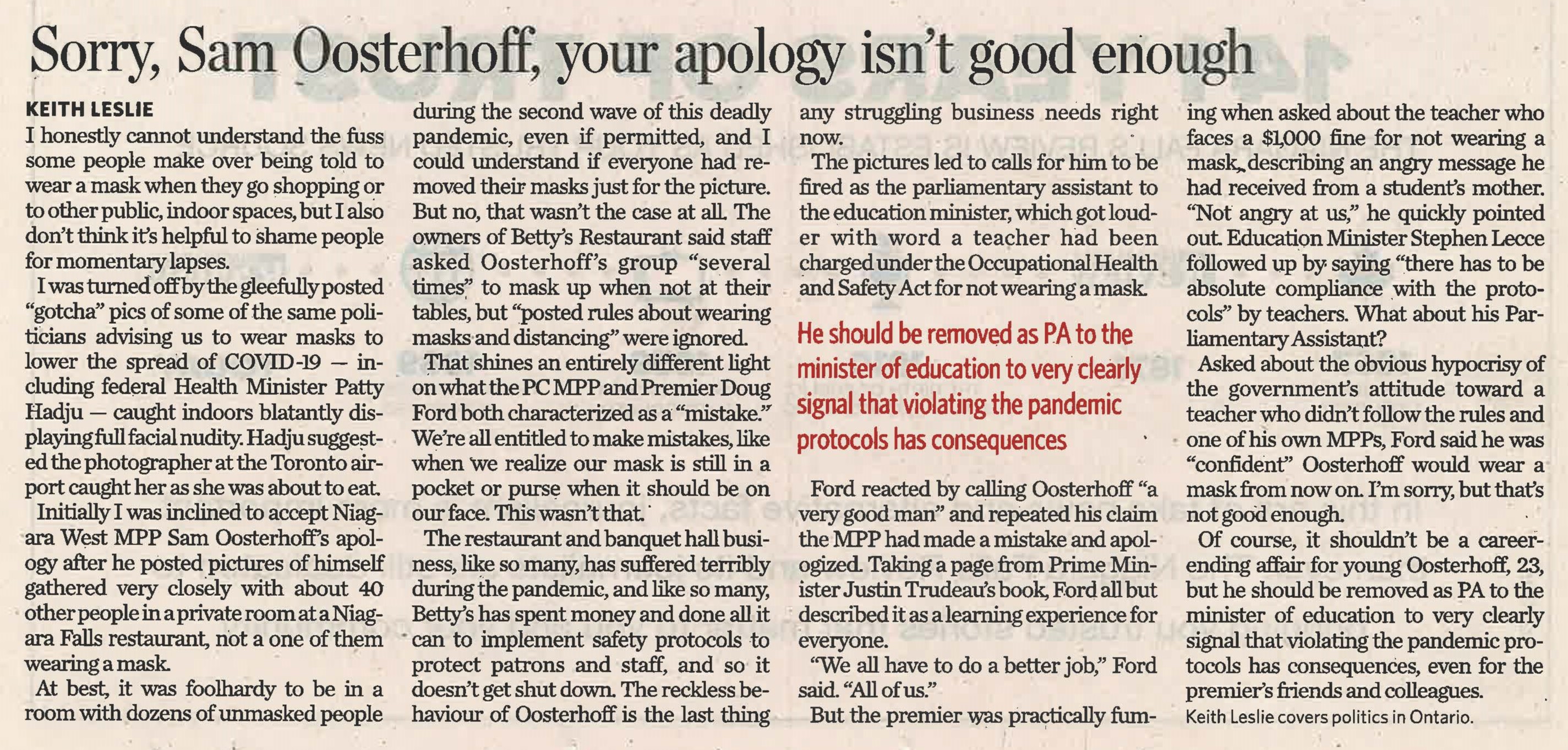 Sorry, Sam Oosterhoff, your apology isn't good enough