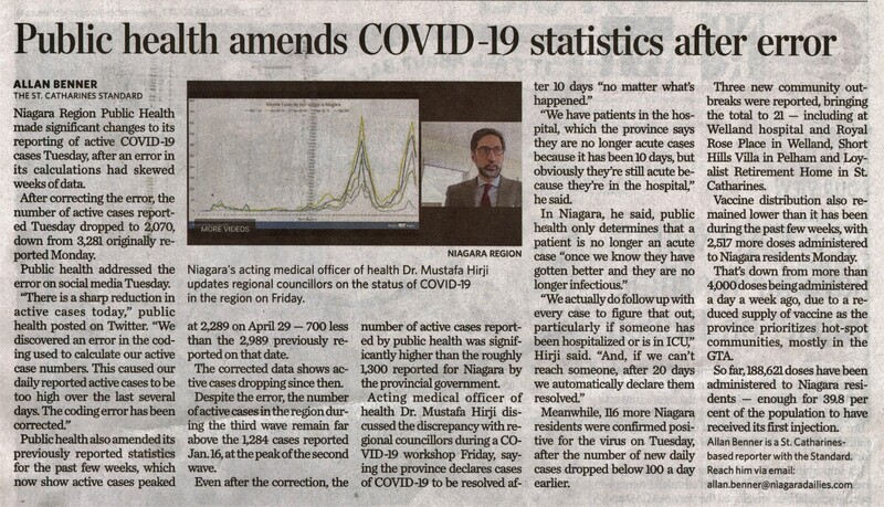 - Hirji, Mustafa Dr. / Niagara Region Public Health / COVID-19 cases /