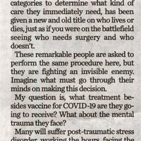 - Health-care staff face more than the threat of the virus : Re : Three more deaths reported as St. Catharines hospital prepares for surge of COVID-19 patients, April 29