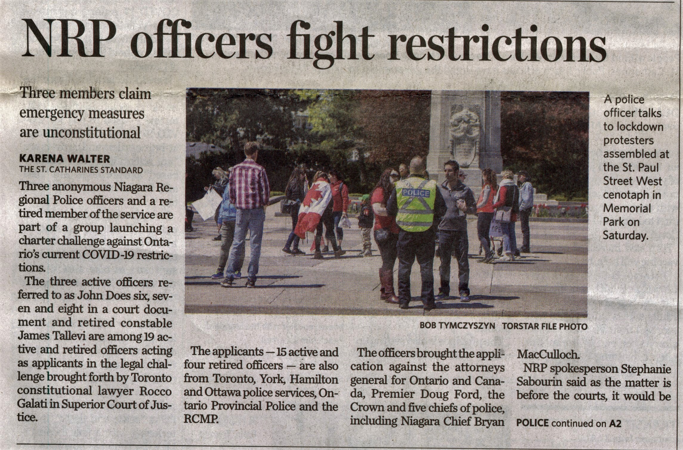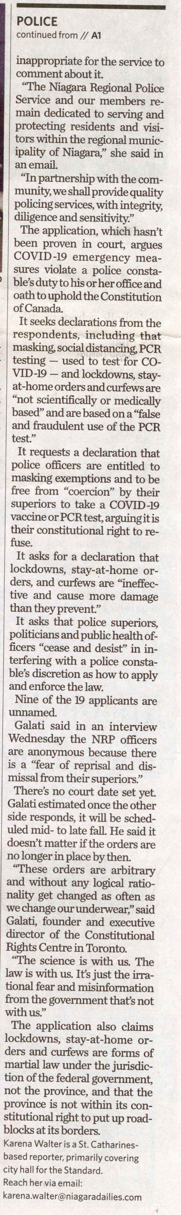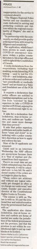 - Niagara Regional Police / restrictions / COVID-19 pandemic / charter challenge