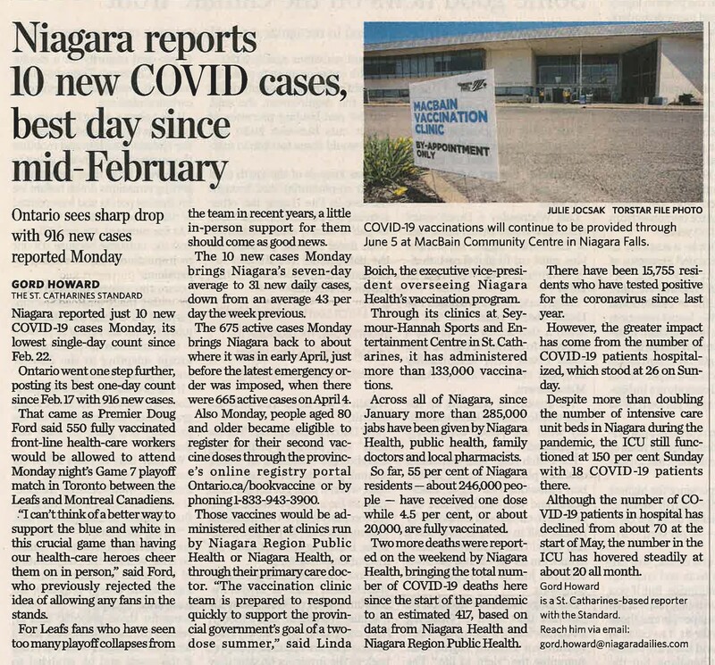 - Niagara reports 10 new COVID cases, best day since mid-February : Ontario sees sharp drop with 916 new cases reported Monday