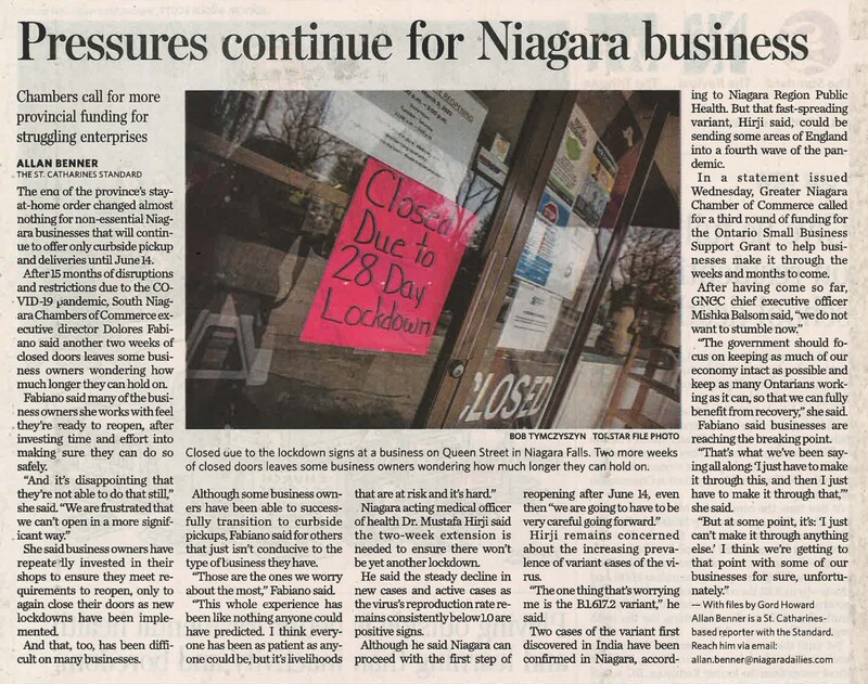- Pressures continue for Niagara business : Chambers call for more provincial funding for struggling enterprises
