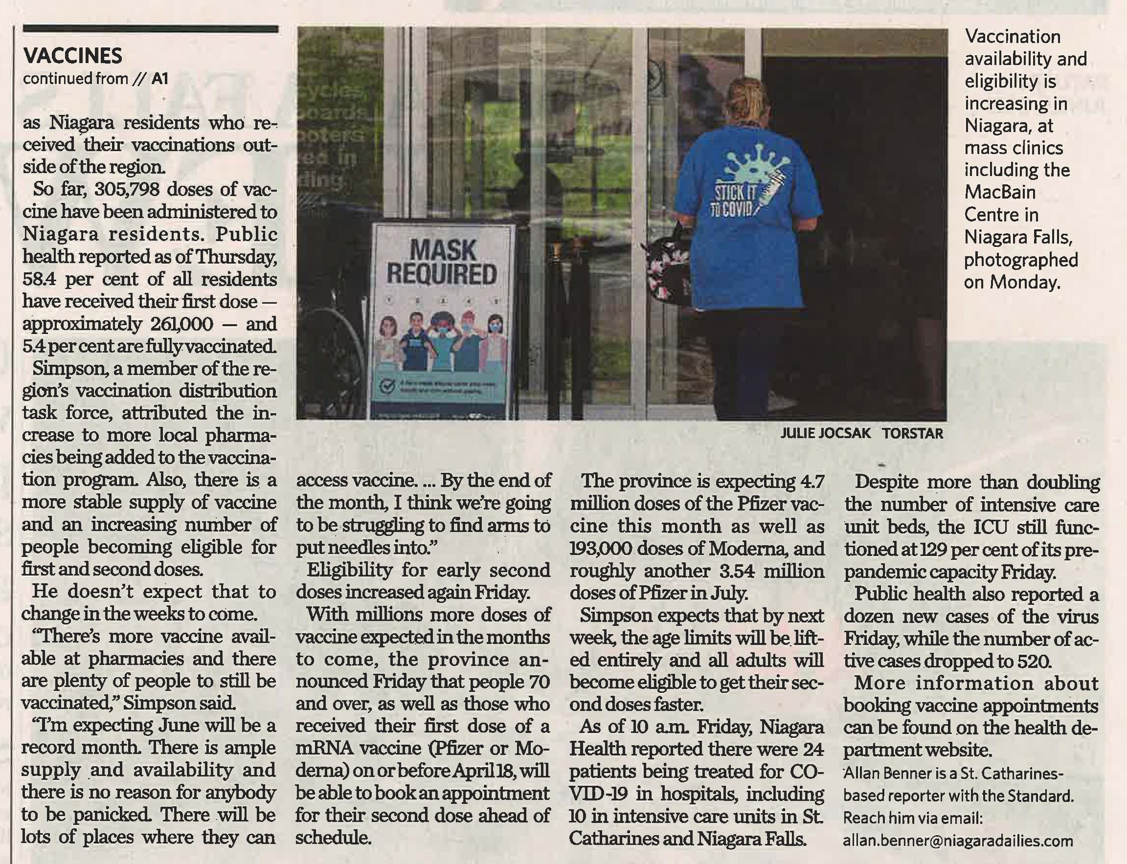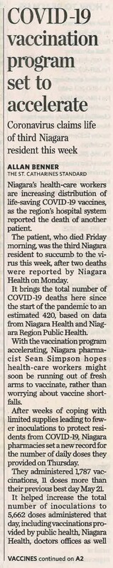 COVID-19 vaccination program set to accelerate : Coronavirus claims life of third Niagara resident this week
