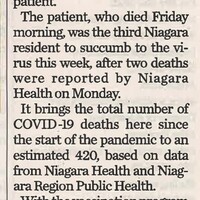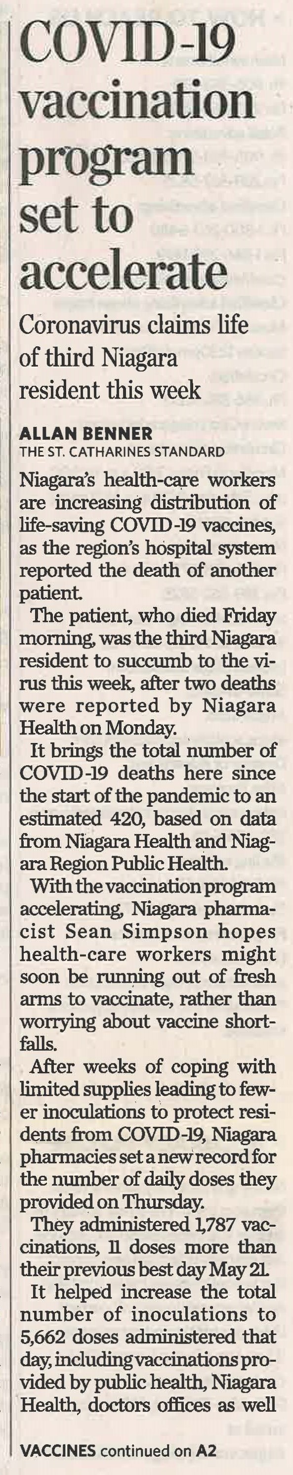 - COVID-19 vaccination program set to accelerate : Coronavirus claims life of third Niagara resident this week