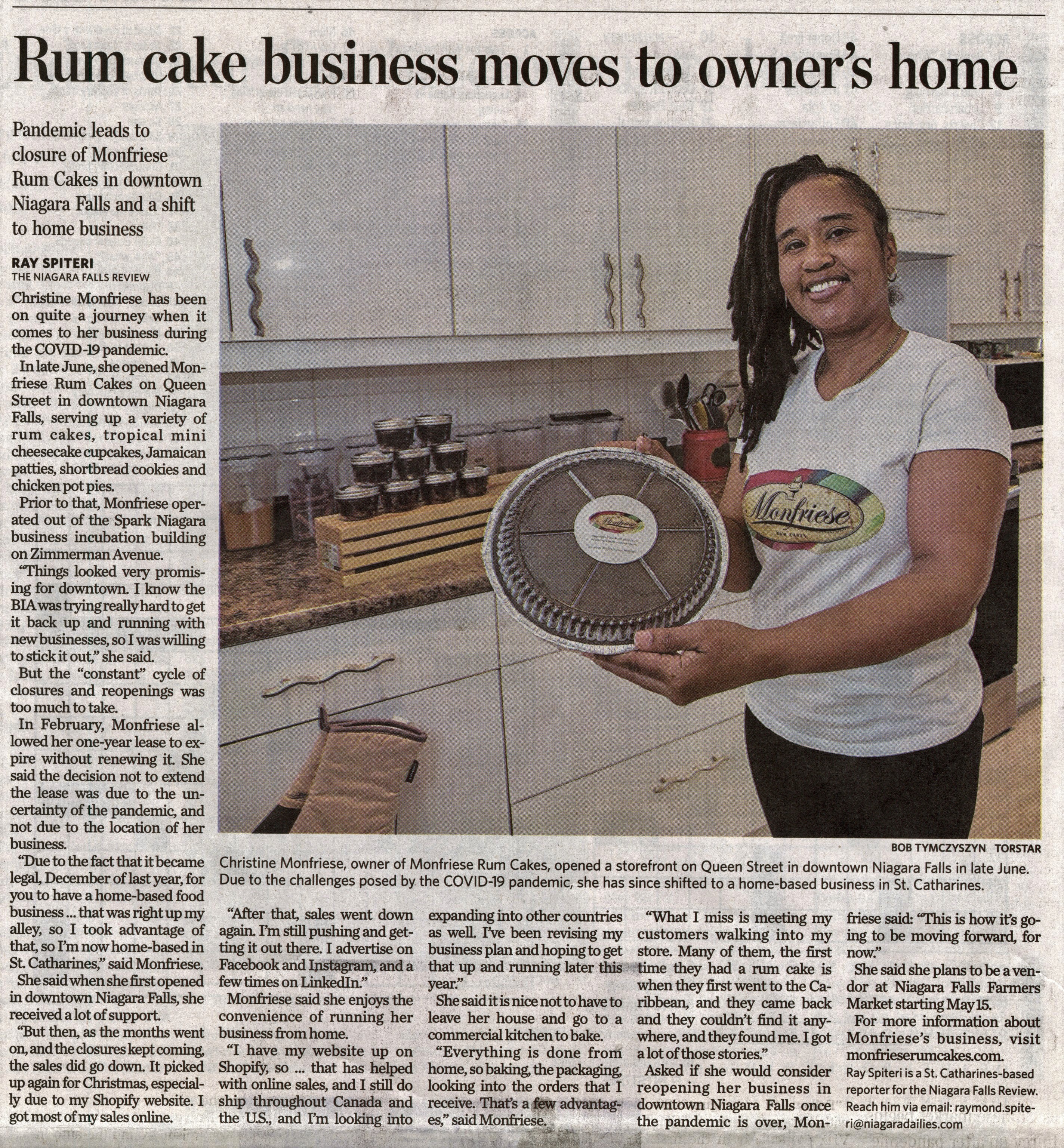 Pandemic leads to closure of Monfriese Rum Cakes in downtown Niagara Falls and a shift to home business - Date