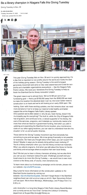 - Niagara Falls Public Library / Giving Tuesday / non-profits / charitable organizations / Stamford Centre Library renovation project / fundraising campaign